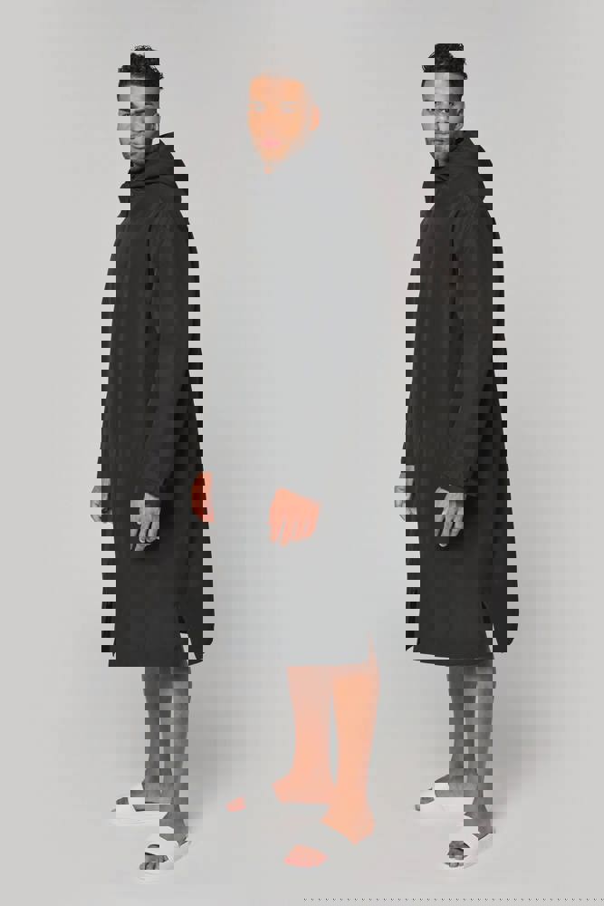 100% gerecycled polyester met PU-coating. Binnenkant: ton-sur-ton sherpa in 100% gerecycled polyester 250 g/m². Voering mouwen: 230T-taffetas van gerecycled polyester 60 g/m². Oversized model. Wassen op 40°C. Lange windbreaker-parka, 8000 mm waterdichte en 3000 g/m²/24H ademende stof. Ruimtesplitten onderaan het kledingstuk. Waterdichte nylon ritssluiting met dubbele metalen stopper en kinbescherming. Capuchon gevoerd met sherpa. 2 zijzakken en 1 binnenzak. Met klittenband verstelbare mouwuiteinden. 1 rits op de borst en 1 drukkersrits onderaan. Met klittenband verstelbare mouwuiteinden. Afneembaar merklabel voor eenvoudige personalisatie.