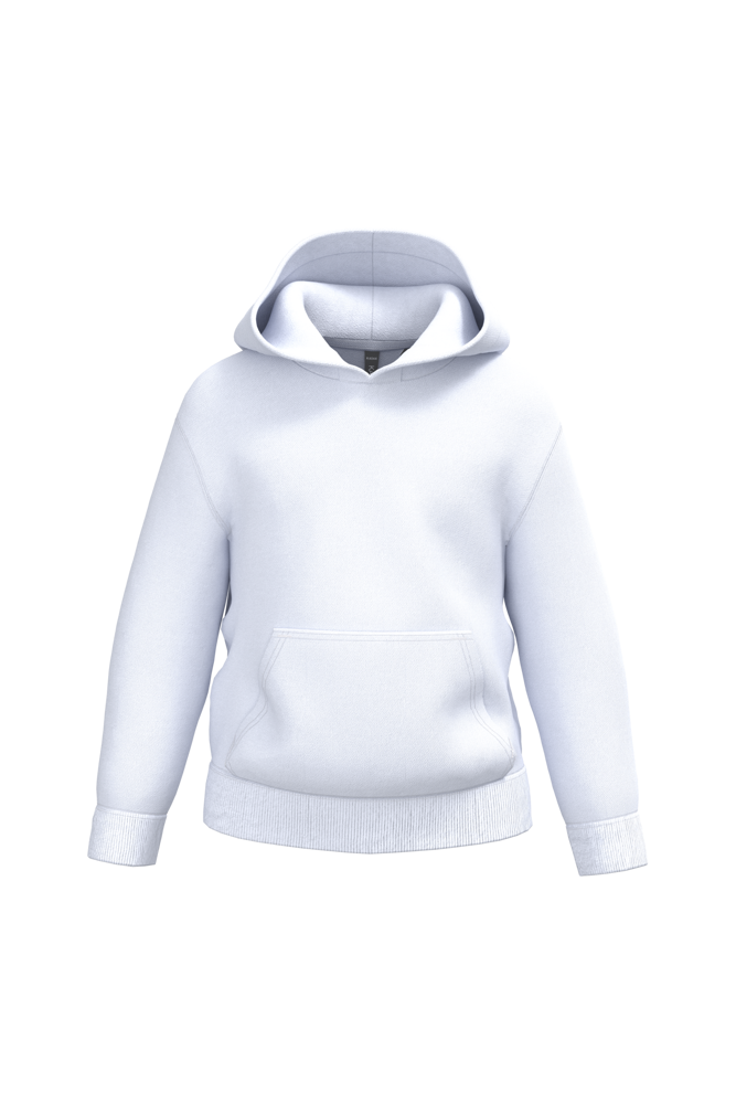 50% ringgesponnen katoen / 50% post-consumer gerecycled polyester. Geborsteld fleece aan de binnenkant. Straight snit. Cut-and-sew. Enzymgewassen. 2x1 ribboord in buisconstructie voor een betere afwerking aan hals, mouwuiteinden en onderkant. Dubbel stiksel aan schouders, mouwinzet, mouwuiteinden en onderaan. Kangoeroezakken. Capuchon gevoerd met jersey. Ton-sur-ton nektape van jersey in de hals. Geen merklabel, maar een maatlabel in de kraag voor eenvoudige personalisatie.