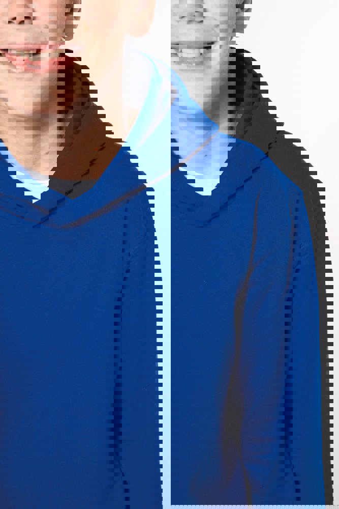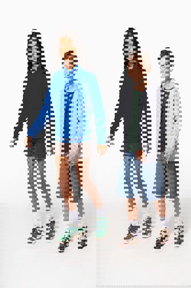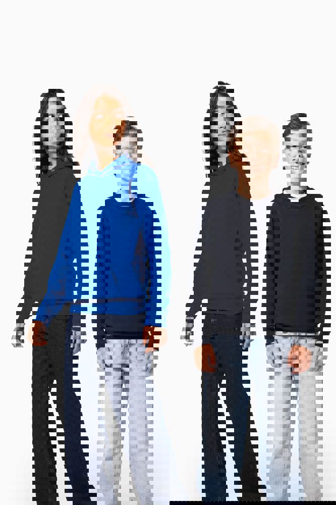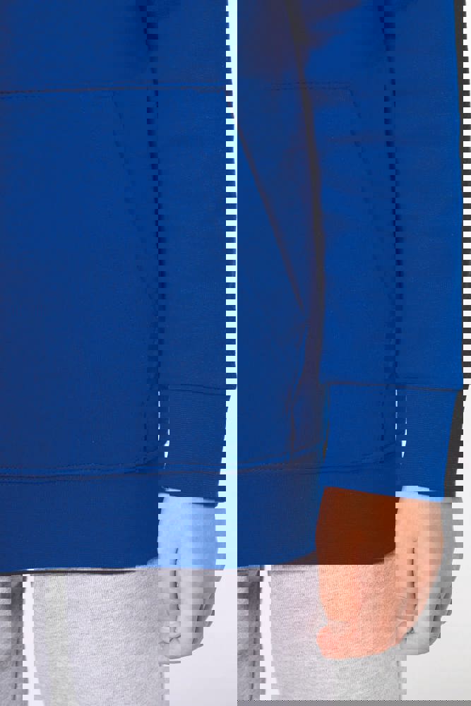 50% ringgesponnen katoen / 50% post-consumer gerecycled polyester. Geborsteld fleece aan de binnenkant. Straight snit. Cut-and-sew. Enzymgewassen. 2x1 ribboord in buisconstructie voor een betere afwerking aan hals, mouwuiteinden en onderkant. Dubbel stiksel aan schouders, mouwinzet, mouwuiteinden en onderaan. Kangoeroezakken. Capuchon gevoerd met jersey. Ton-sur-ton nektape van jersey in de hals. Geen merklabel, maar een maatlabel in de kraag voor eenvoudige personalisatie.