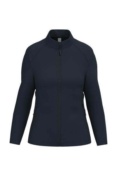 95% polyester / 5% elastaan. Softshell 2 lagen met waterafstotende behandeling. Binnenkant: zwarte micropolar van 100% polyester. Rechte snit. Twee zijzakken met polytricot voering, nylonritsen en zwarte ritstrekkers. Ritssluiting in zwart nylon met kinbescherming en ritstrekker. Schouder- en rugstukken met sierstiksels. Zwarte nektape aan de binnenzijde. Mouwboorden en zoom afgewerkt met dubbele stiksels. Afneembaar merklabel.