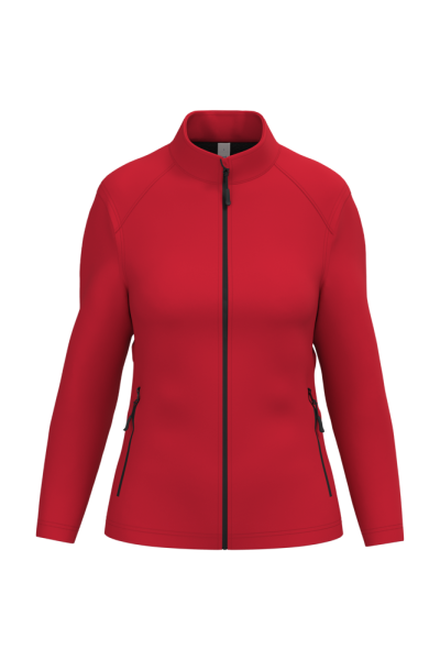 95% polyester / 5% elastaan. Softshell 2 lagen met waterafstotende behandeling. Binnenkant: zwarte micropolar van 100% polyester. Rechte snit. Twee zijzakken met polytricot voering, nylonritsen en zwarte ritstrekkers. Ritssluiting in zwart nylon met kinbescherming en ritstrekker. Schouder- en rugstukken met sierstiksels. Zwarte nektape aan de binnenzijde. Mouwboorden en zoom afgewerkt met dubbele stiksels. Afneembaar merklabel.