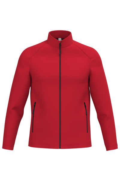 95% polyester / 5% elastaan. Softshell 2 lagen met waterafstotende behandeling. Binnenkant: zwarte microfleece van 100% polyester. Rechte snit. Opstaande kraag. Twee zijzakken met polytricot voering, nylonritsen en zwarte ritstrekkers. Ritssluiting in zwart nylon met kinbescherming en ritstrekker. Schouder- en rugstukken met sierstiksels. Zwarte nektape aan de binnenzijde. Mouwboorden en zoom afgwerkt met dubbele stiksels. Afneembaar merklabel.