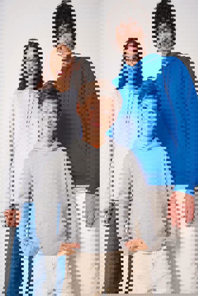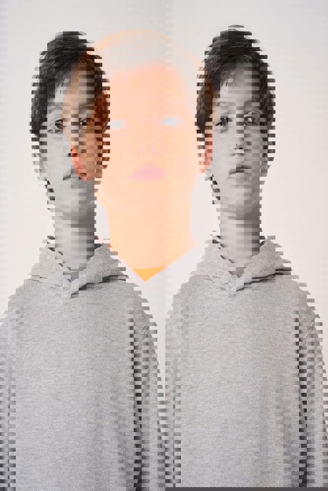 50% katoen / 50% polyester. Geruwd molton, cut-and-sew. Rechte snit. Mouwboorden en zoom in 1x1 ribboord met dubbele stiksels. Kangoeroezak. Gevoerde capuchon in jersey. Afneembaar merklabel.