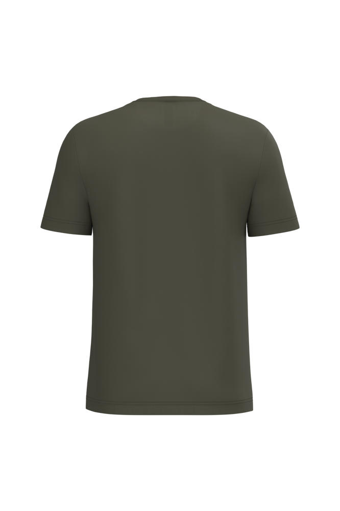 Effen kleuren: 100% katoen. Kleur Ideal Ash Heather: 99% katoen / 1% viscose. Kleur Ideal Oxford Grey: 90% katoen / 10% viscose. Tubulaire jersey. Rechte snit. Ronde hals in 1x1 ribboordafwerking met dubbele stiksels. Nektape aan de binnenzijde in toon-op-toon kleur. Mouwboorden en zoom met dubbele stiksels afgewerkt. Afneembaar merklabel.