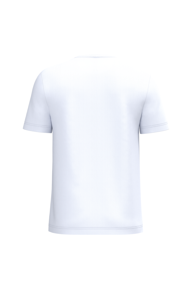 Effen kleuren: 100% katoen. Kleur Ideal Ash Heather: 99% katoen / 1% viscose. Kleur Ideal Oxford Grey: 90% katoen / 10% viscose. Tubulaire jersey. Rechte snit. Ronde hals in 1x1 ribboordafwerking met dubbele stiksels. Nektape aan de binnenzijde in toon-op-toon kleur. Mouwboorden en zoom met dubbele stiksels afgewerkt. Afneembaar merklabel.