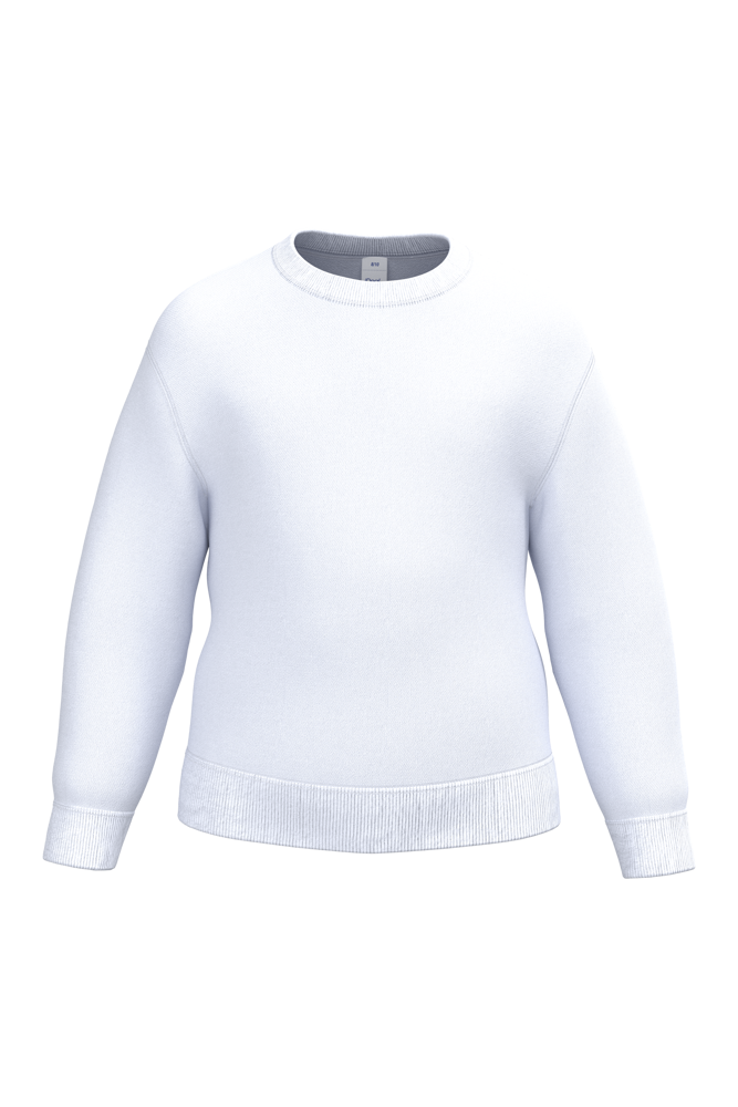 50% katoen / 50% polyester. Geruwd molton, cut-and-sew. Rechte snit. Hals, mouwboorden en zoom in 1x1 ribboord met dubbele stiksels. Afneembaar merklabel.