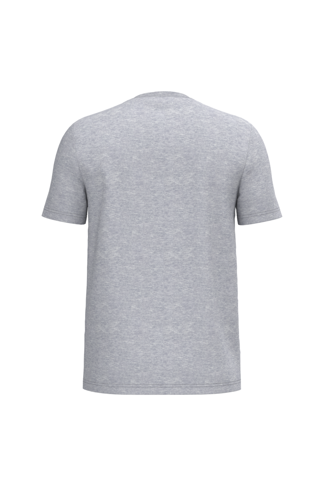Effen kleuren: 100% katoen. Kleur Ideal Oxford Grey: 90% katoen / 10% viscose. Tubulaire jersey. Rechte snit. Ronde hals in 1x1 ribboordafwerking met dubbele stiksels. Nektape aan de binnenzijde in toon-op-toon kleur. Mouwboorden en zoom met dubbele stiksels afgewerkt. Afneembaar merklabel.