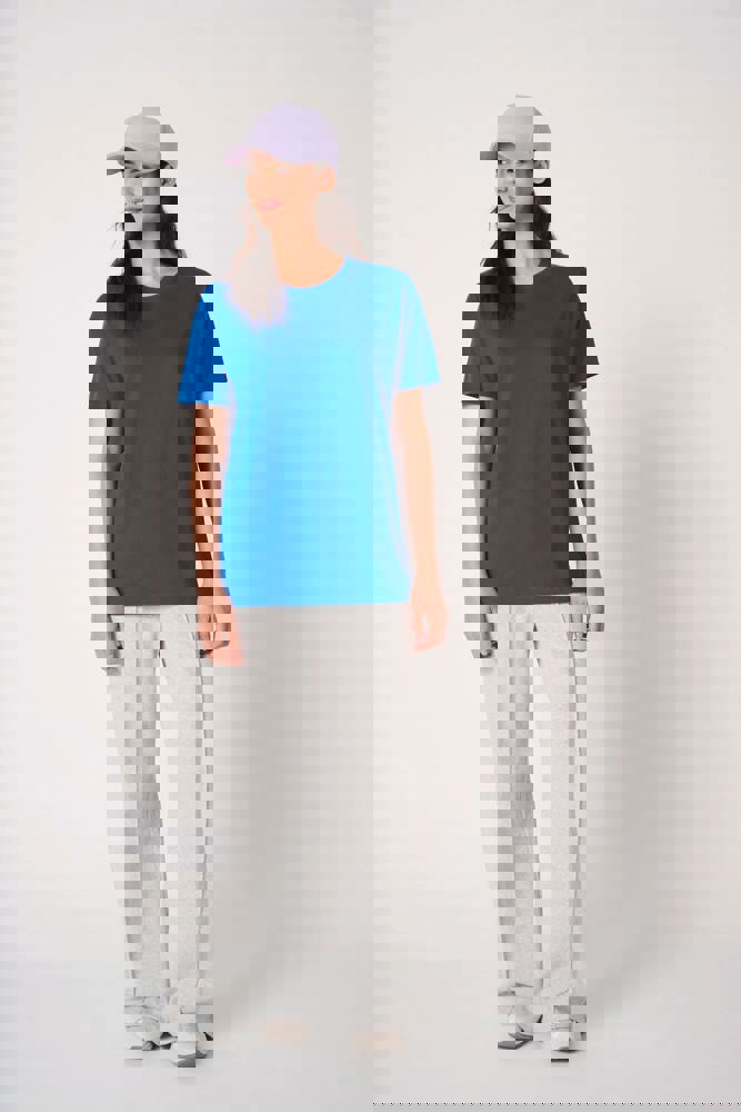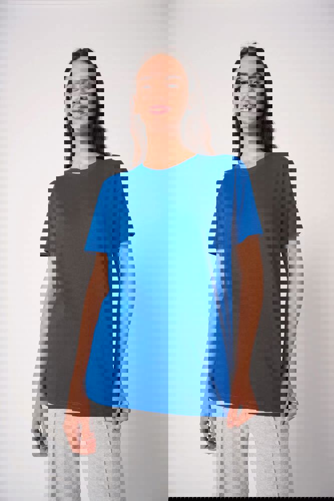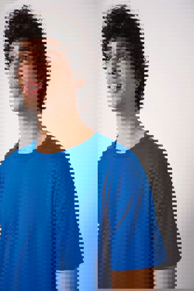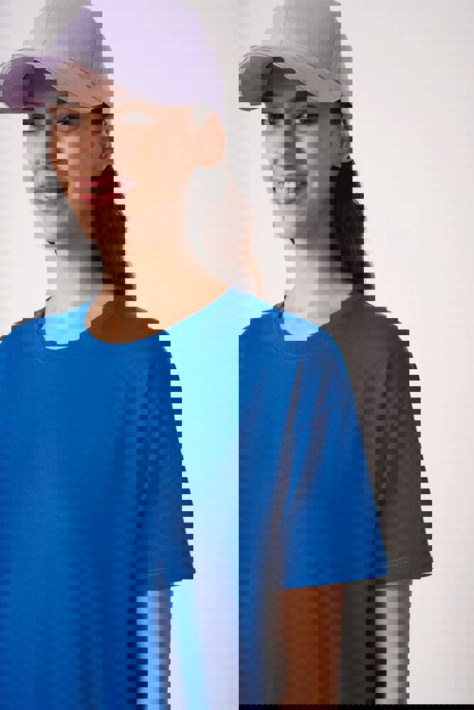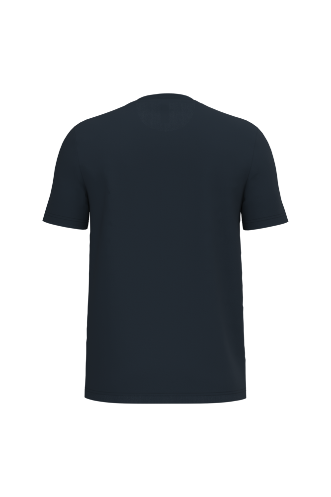 Effen kleuren: 100% katoen. Kleur Ideal Oxford Grey: 90% katoen / 10% viscose. Tubulaire jersey. Rechte snit. Ronde hals in 1x1 ribboordafwerking met dubbele stiksels. Nektape aan de binnenzijde in toon-op-toon kleur. Mouwboorden en zoom met dubbele stiksels afgewerkt. Afneembaar merklabel.