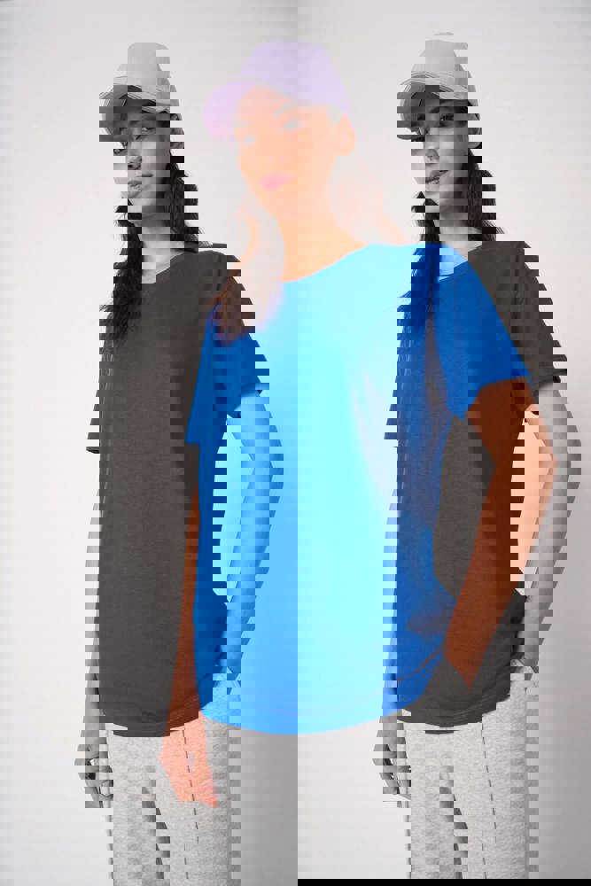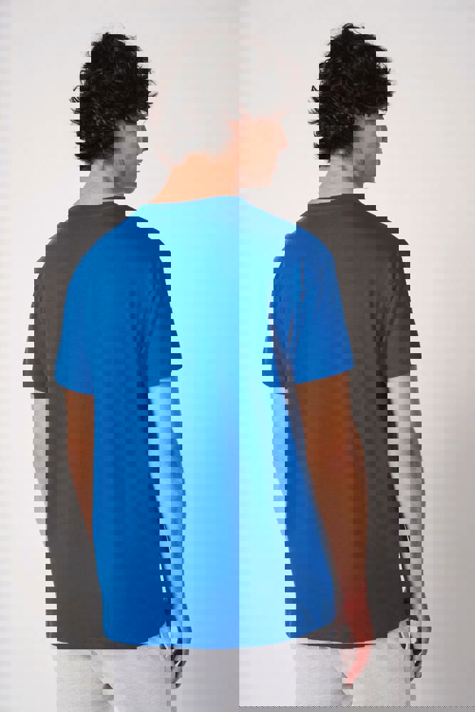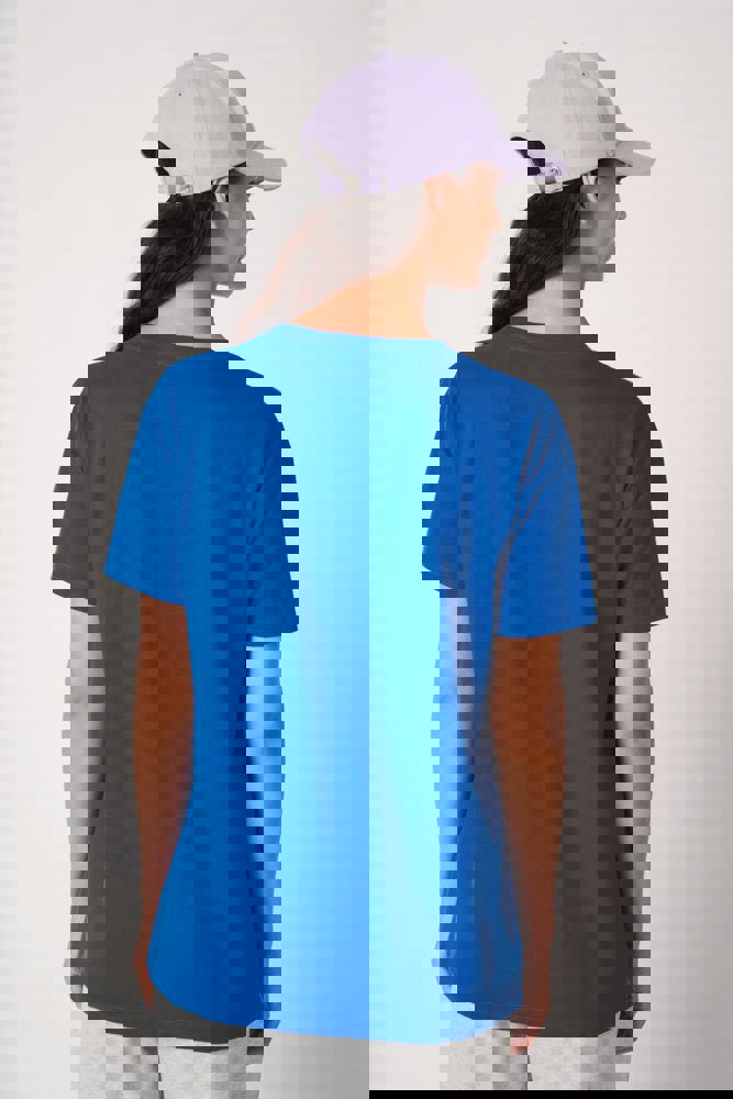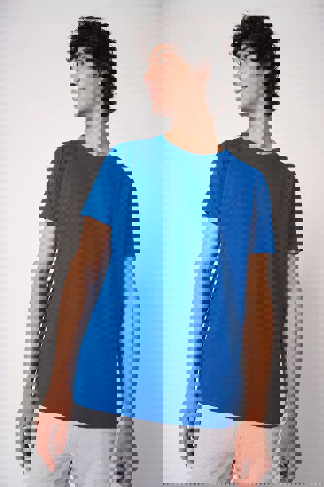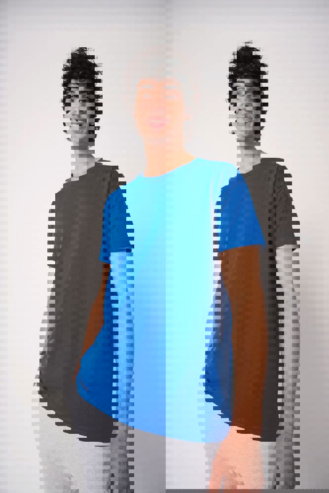 Effen kleuren: 100% katoen. Kleur Ideal Oxford Grey: 90% katoen / 10% viscose. Tubulaire jersey. Rechte snit. Ronde hals in 1x1 ribboordafwerking met dubbele stiksels. Nektape aan de binnenzijde in toon-op-toon kleur. Mouwboorden en zoom met dubbele stiksels afgewerkt. Afneembaar merklabel.
