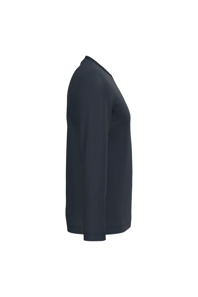 Effen kleuren: 100% katoen. Kleur Ideal Ash Heather: 99% katoen / 1% viscose. Kleur Ideal Oxford Grey: 90% katoen / 10% viscose. Tubulaire jersey. Rechte snit. Ronde hals in 1x1 ribboordafwerking met dubbele stiksels. Nektape aan de binnenzijde in toon-op-toon kleur. Mouwboorden en zoom met dubbele stiksels afgewerkt. Afneembaar merklabel.