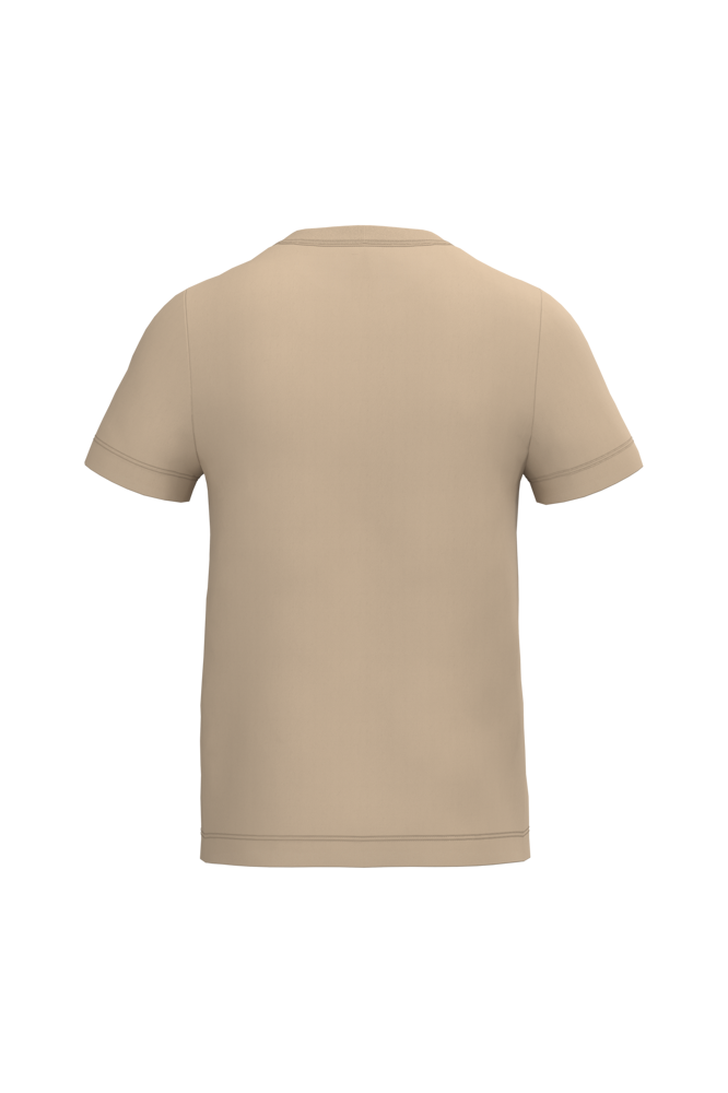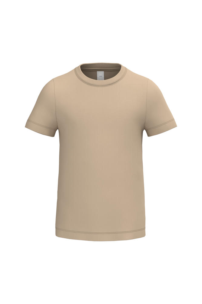 Effen kleuren: 100% katoen. Kleur Ideal Ash Heather: 99% katoen / 1% viscose. Kleur Ideal Oxford Grey: 90% katoen / 10% viscose. Cut & sewn jersey van maat 1/2 t/m 6/8 en tubulair van maat 8/10 t/m 12/14. Rechte snit. Ronde hals in 1x1 ribboordafwerking met dubbele stiksels. Toon-op-toon nektape aan de binnenzijde. Mouwboorden en zoom afgewerkt met dubbele stiksels. Afneembaar merklabel.