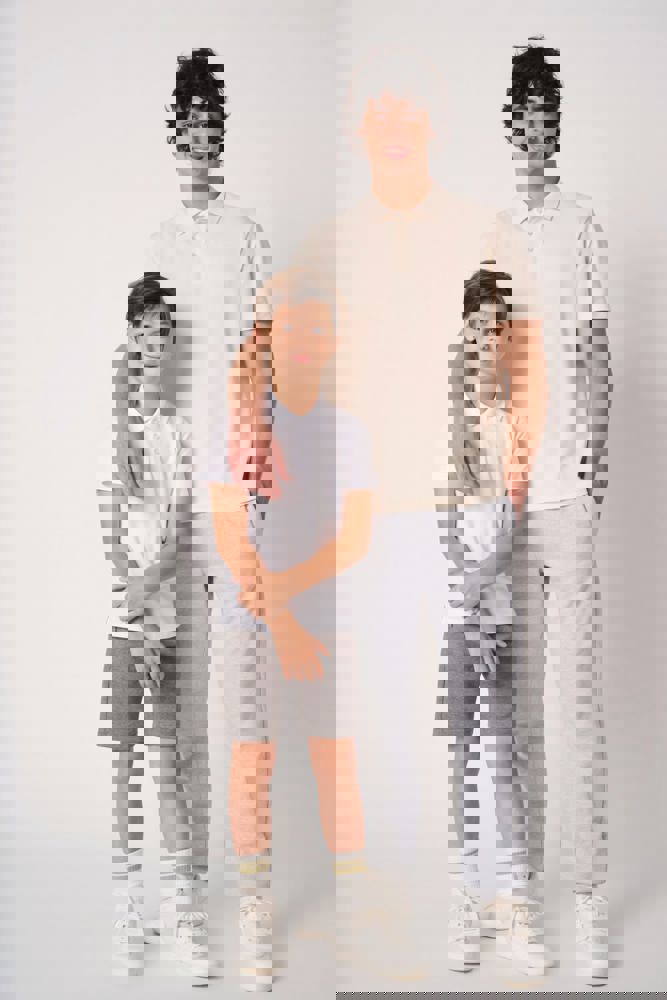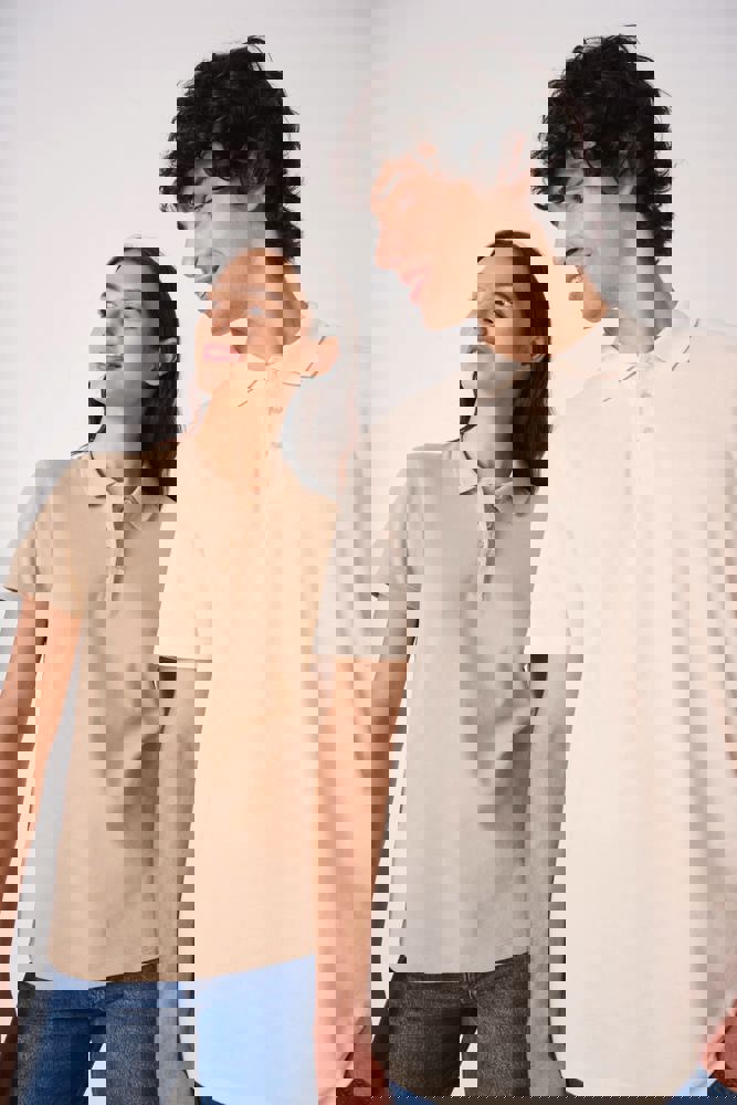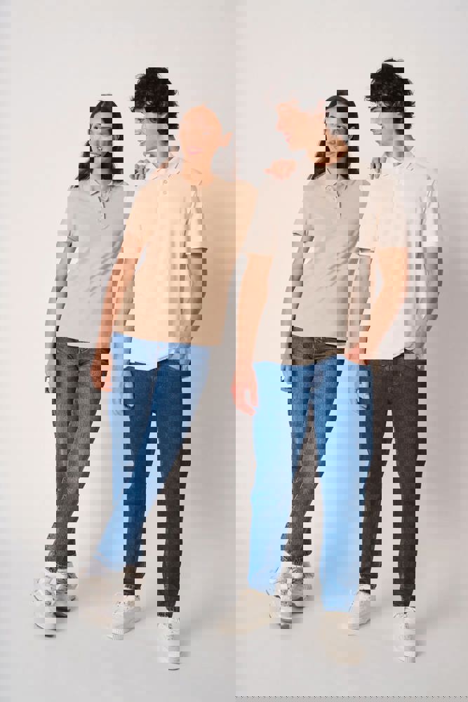 Effen kleuren: 100% katoen. Kleur Ideal Ash Heather: 99% katoen / 1% viscose. Kleur Ideal Oxford Grey: 90% katoen / 10% viscose. Piqué breisel. Rechte snit. Kraag in 1x1 ribboord. Sluiting met 3 toon-op-toon knopen. Toon-op-toon nektape aan de binnenzijde. Zijsplitjes. Mouwboorden en zoom afgewerkt met dubbele stiksels. Afneembaar merklabel.