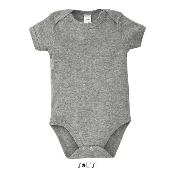 SOL'S BAMBINO babybody, 100% gekamd ringgesponnen katoen rib 1x1 180, kraag, manchetten en beenboord, kapmouwtjes, drukknoopsluiting onderaan. Raadpleeg de maattabel in de productdocumentatie voor de juiste maat.