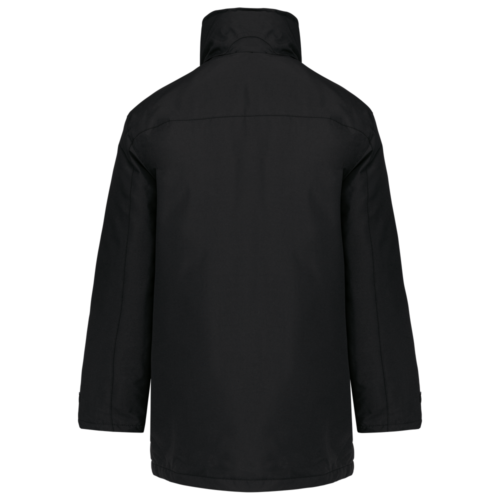 Buitenkant: 100% oxford polyester. Binnenkant: gewatteerd polyester. 2 voorzakken met rits. 2 binnenzakken waarvan 1 voor de GSM. Afneembare capuchon in de kraag. Kraag gevoerd met fleece. Drukkersrits. Waterdichte naden. Ritssluiting verborgen onder een lijst met drukknopen en klittenband. Verstelbare mouwuiteinden.