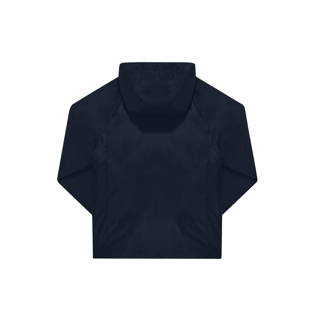 100% gerecycled polyester. Waterafstotend dankzij de DWR-coating (Durable Water Repellent). Raglanmouwen, verstelbare stormcapuchon en semi-elastische boorden. 2 voorzakken met rits.