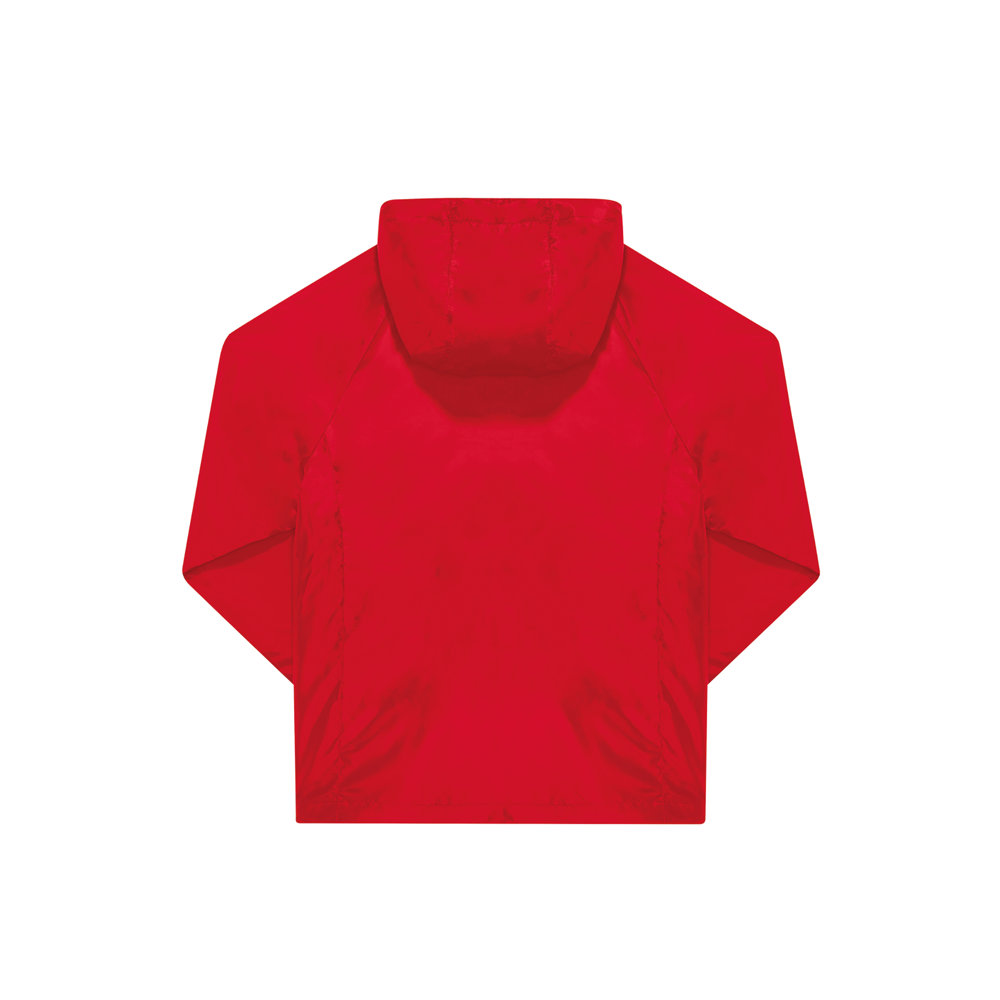 100% gerecycled polyester. Waterafstotend dankzij de DWR-coating (Durable Water Repellent). Raglanmouwen, verstelbare stormcapuchon en semi-elastische boorden. 2 voorzakken met rits.