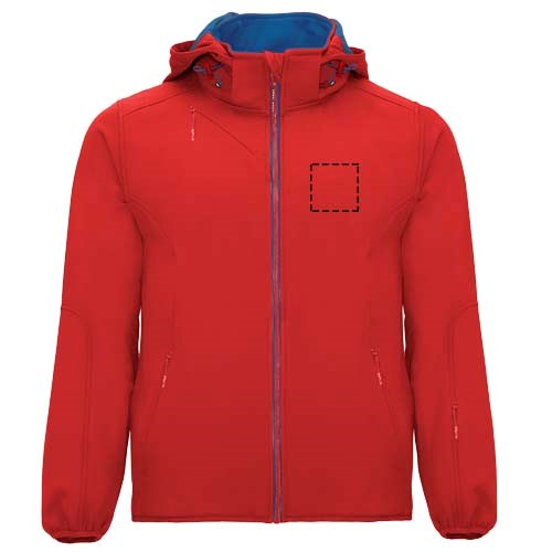 Tweelaags softshell in sportieve pasvorm. Contrasterende centrale rits met kinbeschermer en trekker. Binnenvoering van contrasterende microfleecestof. Buitenzak op de rechterborst met onzichtbare rits in diagonale vorm. Twee zijzakken met onzichtbare rits. Zak op de linkermouw. Bijpassende elastische bies in manchetten en zoom. Opvouwbare capuchon met contrasterende micropolaire voering. Verwijderbaar etiket. Waterbestendig. Winddicht. Het mannelijke model is 185 cm en draagt maat M en het vrouwelijke model is 174 cm en draagt maat S.