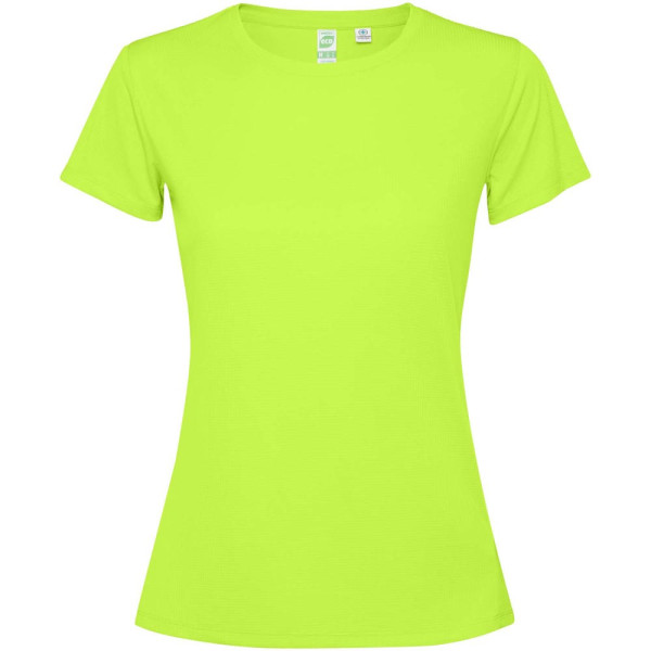 Getailleerd technisch T-shirt met korte mouwen voor dames. Kraag met bijpassende naden. De zoom...meer