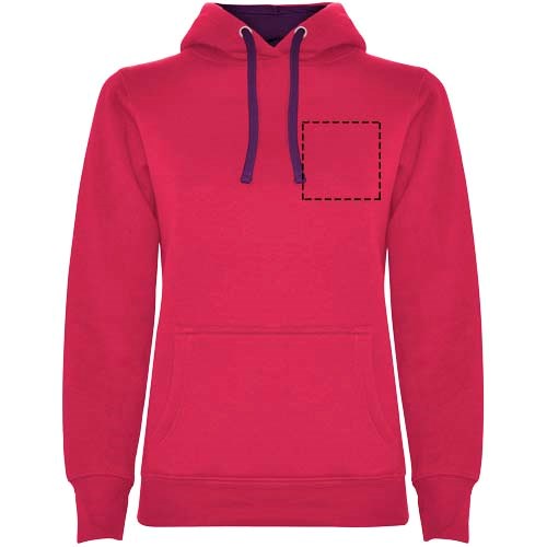 Getailleerd sweatshirt met tweekleurige capuchon van dubbele stof, contrasterend verstelbaar trekkoord, bedekte naden in de kraag en kangoeroezak. 1x1 elastaan rib in manchetten en zoom. Duimsplitdetail. Verwijderbaar etiket. Het model is 179 cm en draagt maat S.