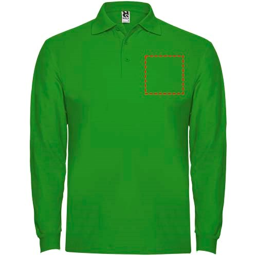 Poloshirt met lange mouwen, geribde kraag en manchetten, sluiting met drie knopen en 1x1 geribde manchetten van elastaan. Versterkte bedekte naden in de kraag. Optionele zak. Verwijderbaar etiket. Het model is 190 cm en draagt maat L.