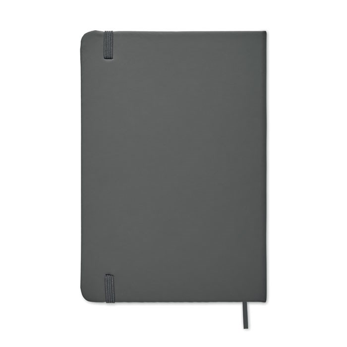 A5 notitieboek met harde PU kaft. Gebonden. 192 pagina's van blanco gerecycled papier (96 vellen). Bijpassende elastische sluitingsband en paginamarkering met lint. FSC®-certified | FSC MIX CREDIT, P7.1, FSC-C213206