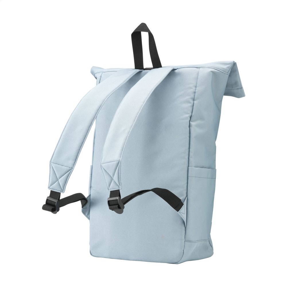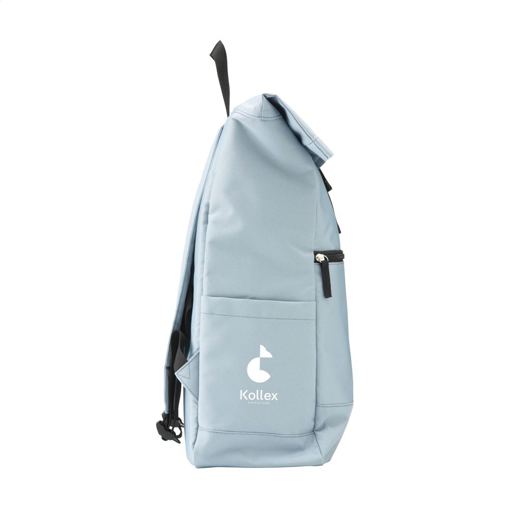 Praktische, stevige en waterafstotende urban ‘roll-top’ rugzak van RPET Polyester. De rugzak...meer