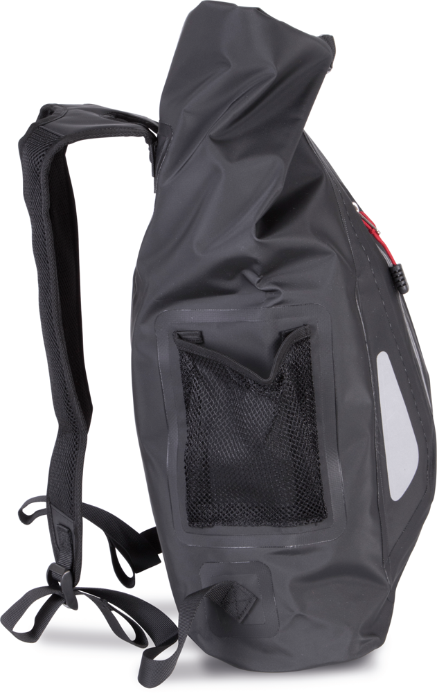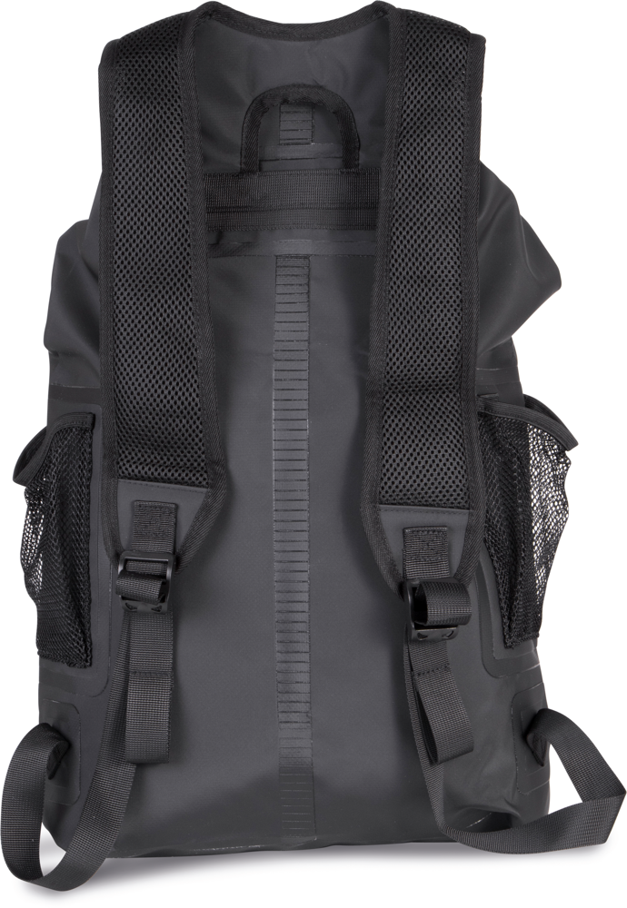 Waterdichte reistas van pvc-zeildoek (polyvinylchloride). Roll-top rolsluiting. Aan de voorkant een 100% waterdichte ritszak. Comfortabele en ademende schouderbanden. Zijzak van mesh. Perfect voor watersporten, op zee of voor uitstapjes met de motor.