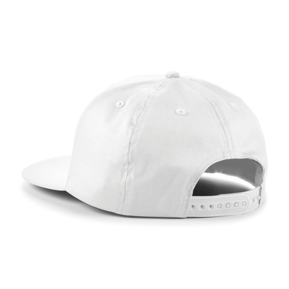 100% twillkatoen. Platte zonneklep. Regelbaar met plastic Snapback-retrotong. Tearaway etiket om het merk gemakkelijker te vervangen.