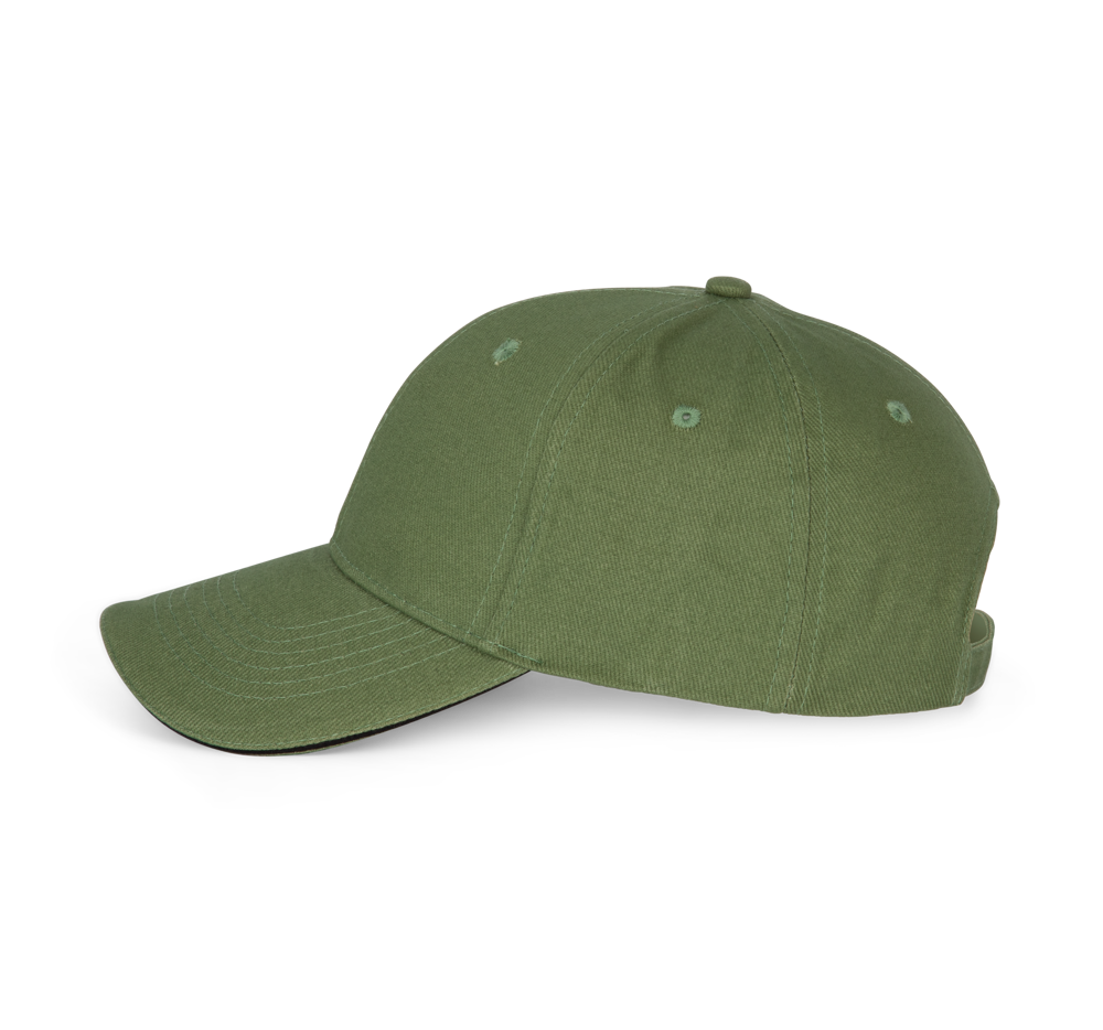 100% zwaar geborsteld katoen twill. Klep met contrasterende bies. Verstelbare sluiting met een zilverkleurige metalen gesp. *3 kleursamenstellingen met extra contrastkleur onder de klep.