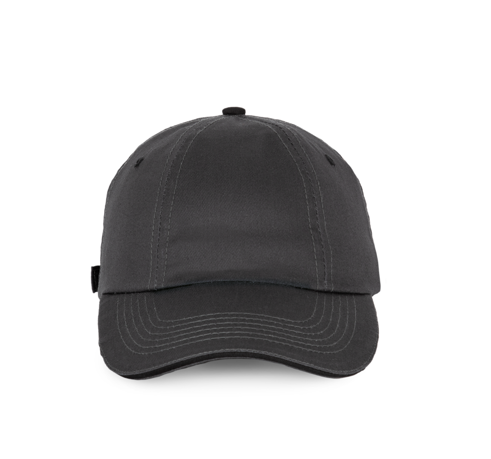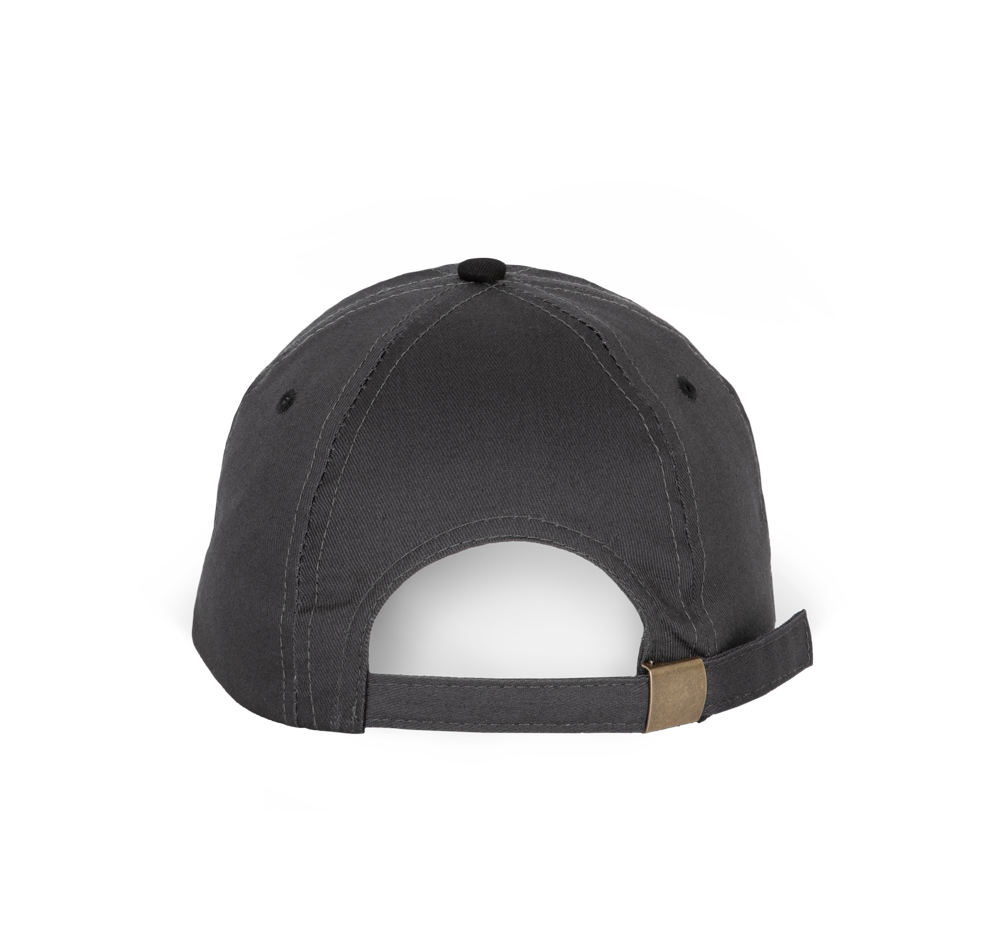 100% katoen twill. Eén segement aan de voorkant om de personalisatie te vereenvoudigen. Klep met contrasterende bies. Verstelbare sluiting met een metalen gesp.