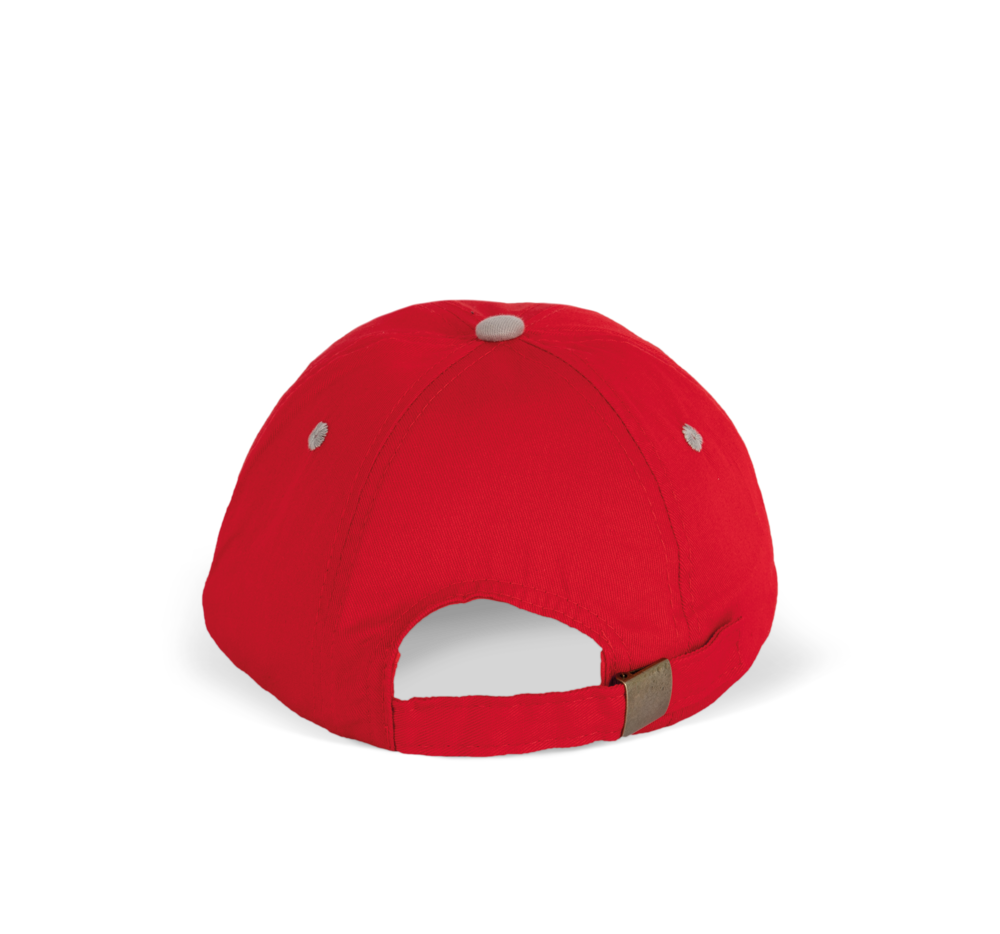 100% katoen twill. Eén segement aan de voorkant om de personalisatie te vereenvoudigen. Klep met contrasterende bies. Verstelbare sluiting met een metalen gesp.