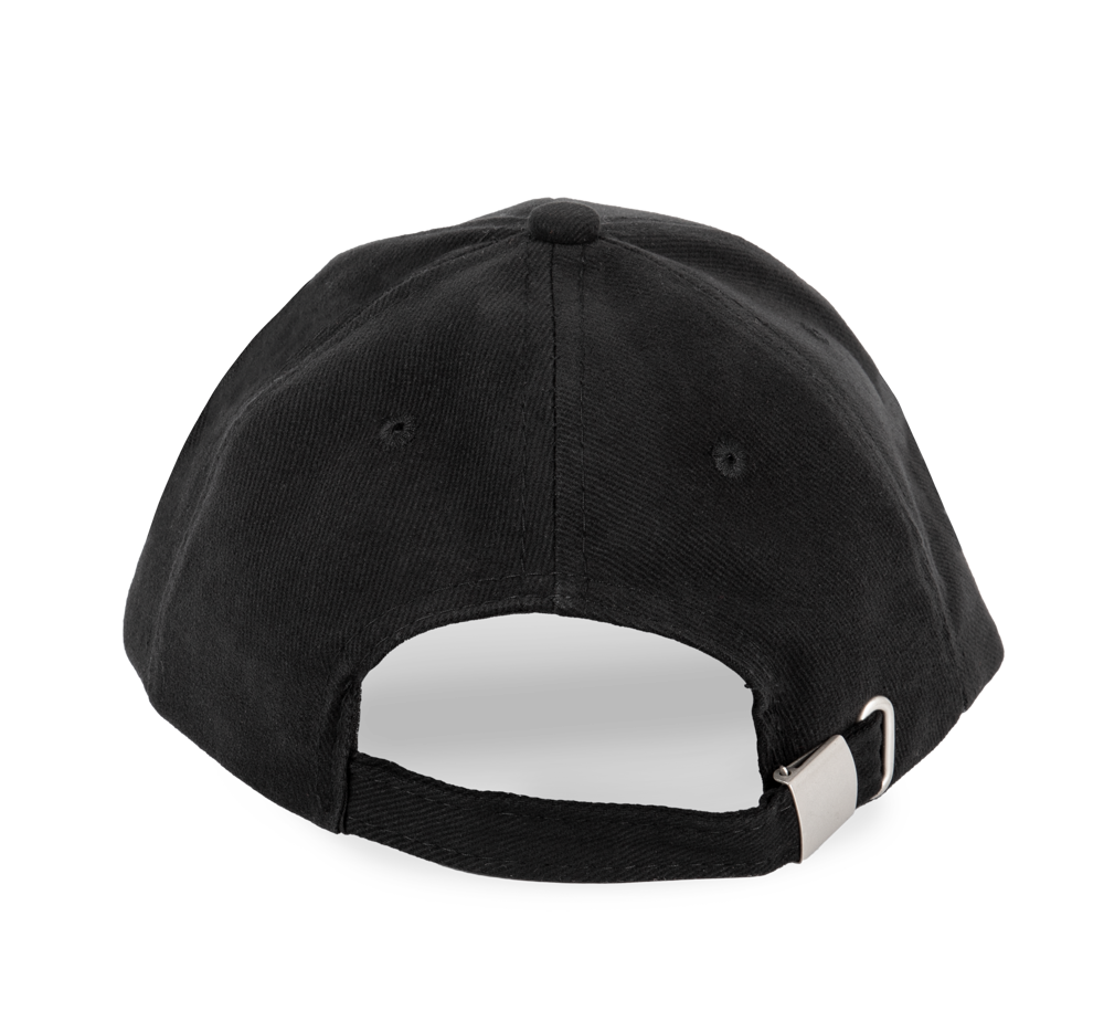 100% zwaar geborsteld katoen twill. Voorgevormde klep met contrasterende bies. Verstelbare sluiting met een zilverkleurige metalen gesp.