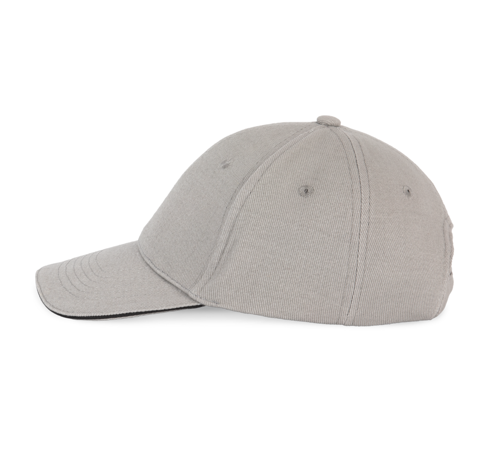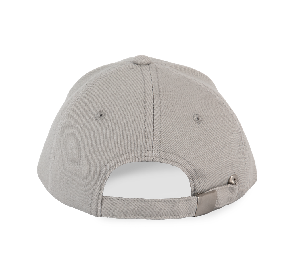 100% zwaar geborsteld katoen twill. Voorgevormde klep met contrasterende bies. Verstelbare sluiting met een zilverkleurige metalen gesp.