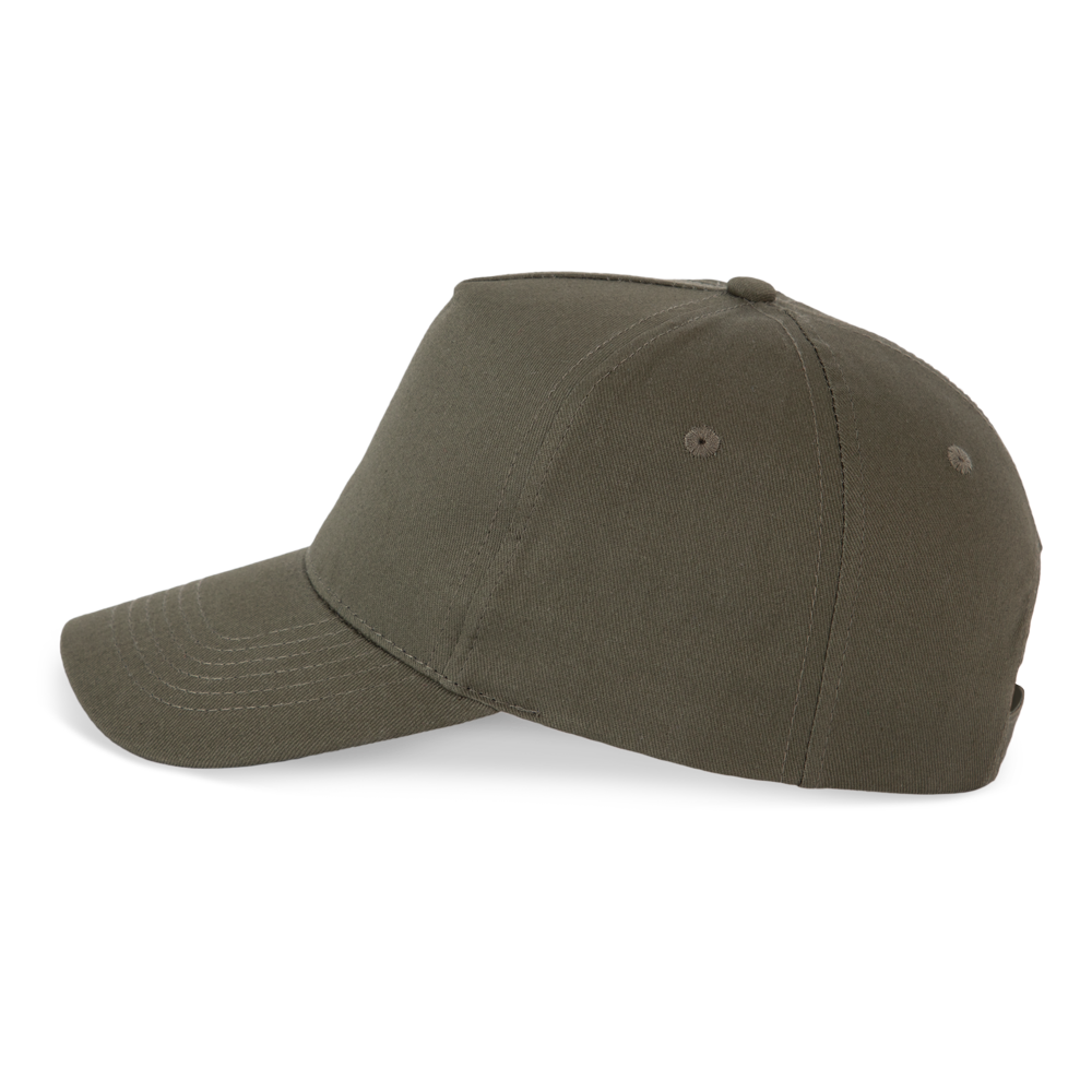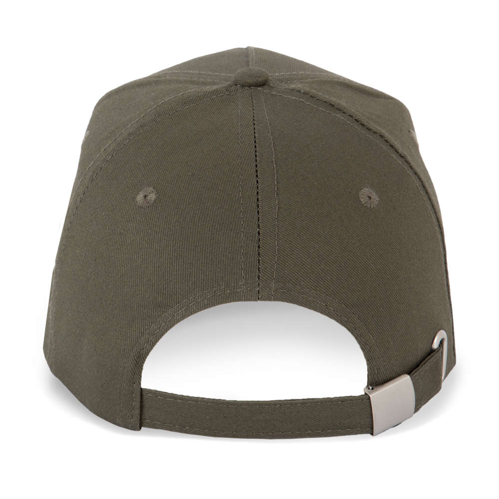 100% katoen twill. Verstevigde voorkant. Voorgevormde klep. Verstelbare sluiting met een zilverkleurige metalen gesp.