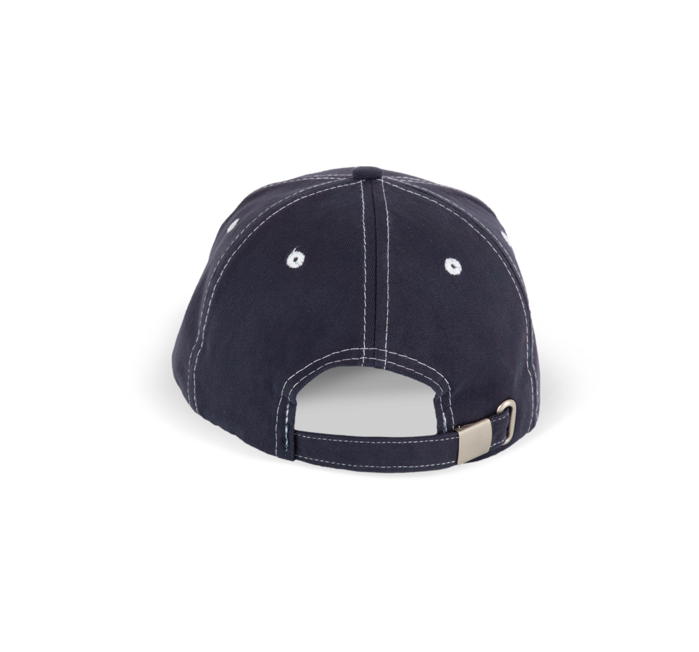100% geborsteld twill katoen. 6 verstevigde panelen. Eyelets en naden in contrastkleur. Katoenen zweetband.