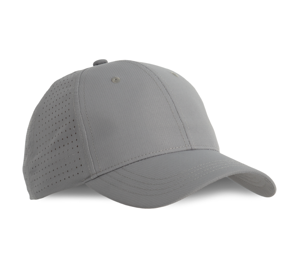 100% polyester. Pet met 6 panelen. De 4 achterste panelen kregen gelaserde microgaatjes om een optimale ventilatie te verzekeren. De zonneklep is afgerond. Deze pet kreeg een regelbare sluiting met klittenband.