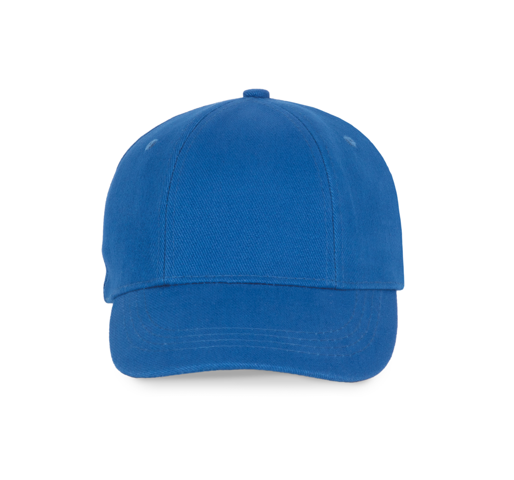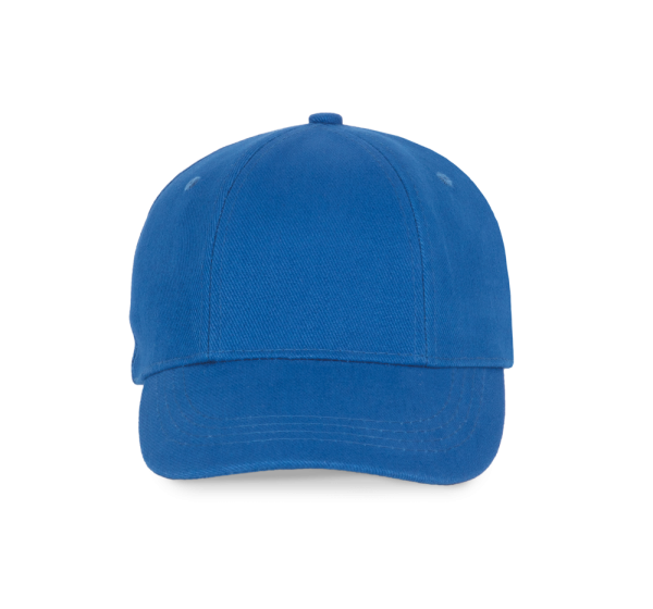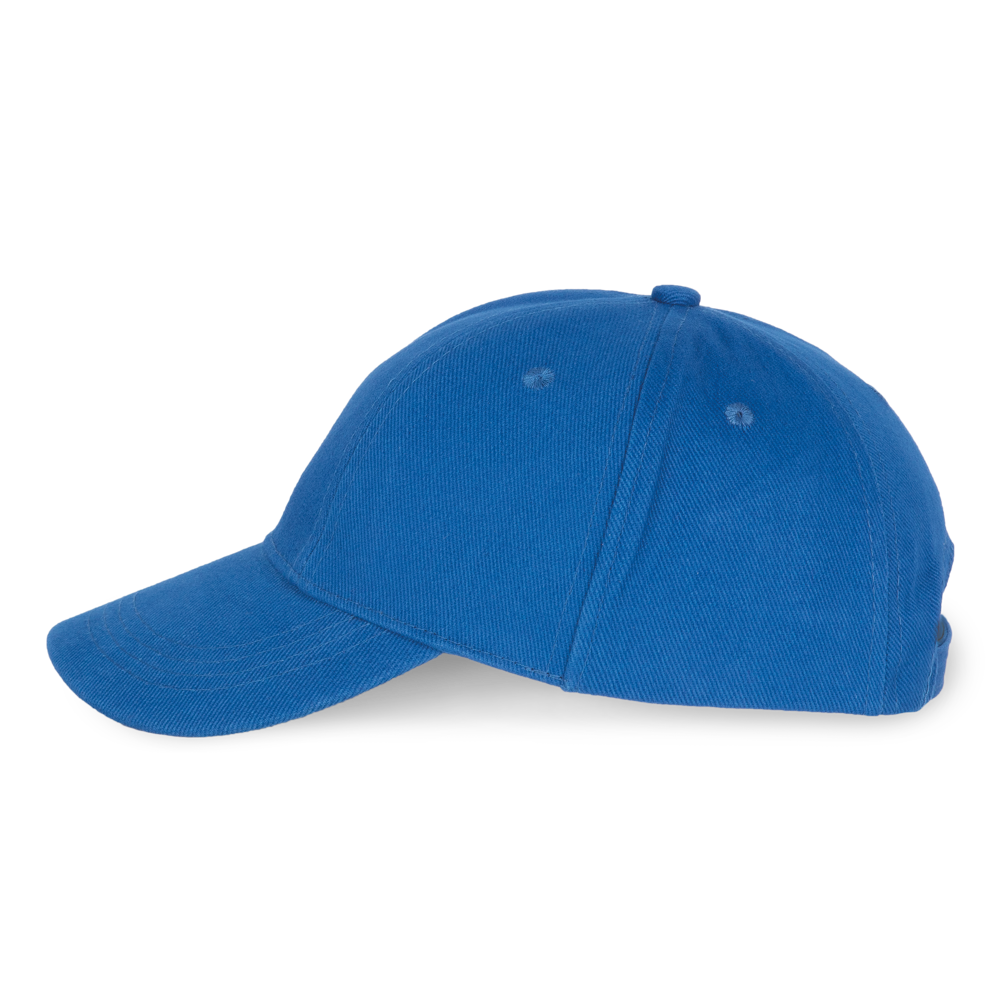 100% geborstelde zware katoen. 6 verstevigde panelen. Voorpaneel eenvoudig te bedrukken. Verstelbare metalen gesp-sluiting.