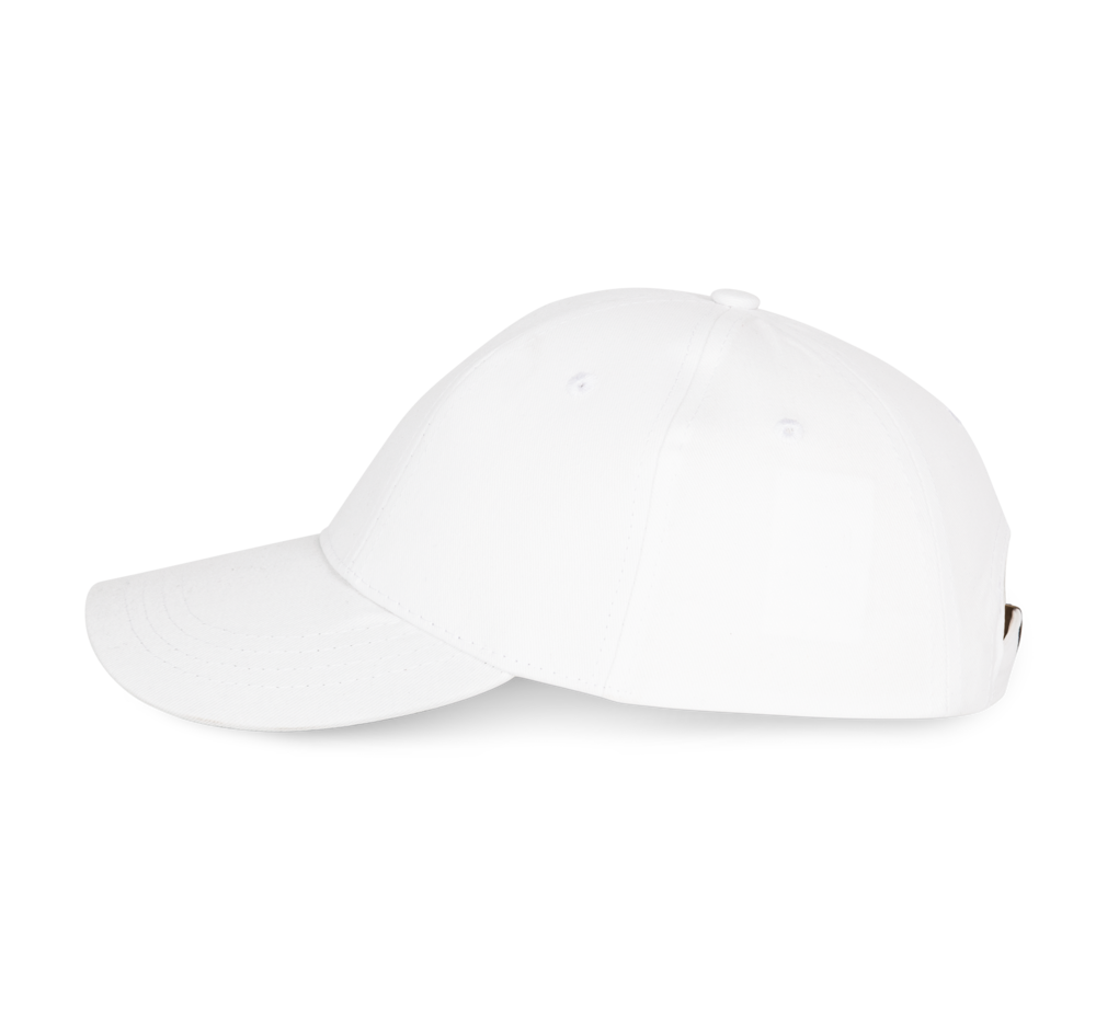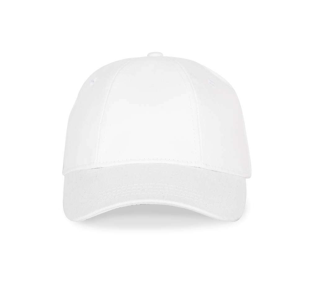100% geborstelde zware katoen. 6 verstevigde panelen. Voorpaneel eenvoudig te bedrukken. Verstelbare metalen gesp-sluiting.