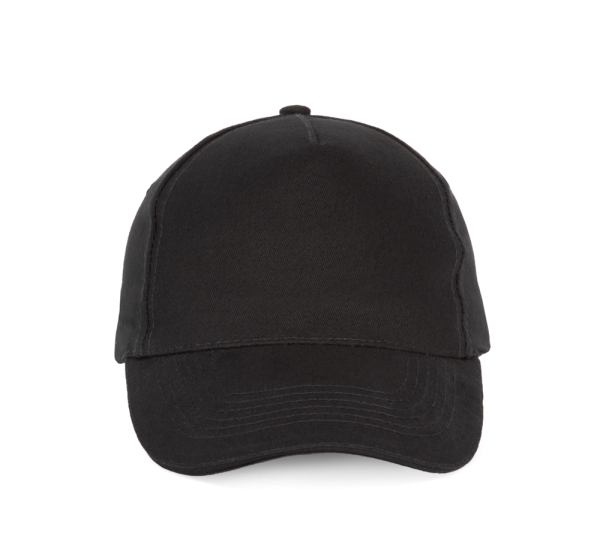 100% zwaar geborsteld sergé katoen. 5 panelen. Klep met contstrasterende bies. Katoenen zweetband. Verstelbare gesp-sluiting.