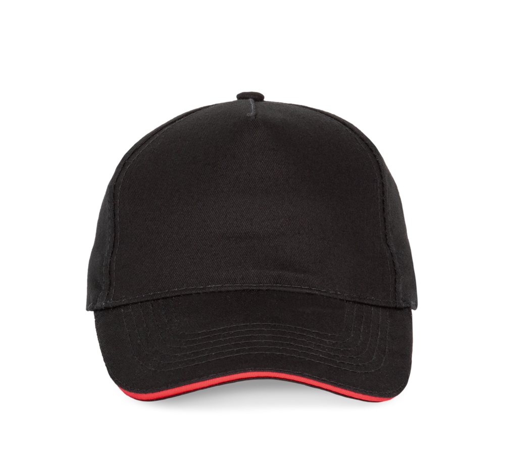 100% zwaar geborsteld sergé katoen. 5 panelen. Klep met contstrasterende bies. Katoenen zweetband. Verstelbare gesp-sluiting.