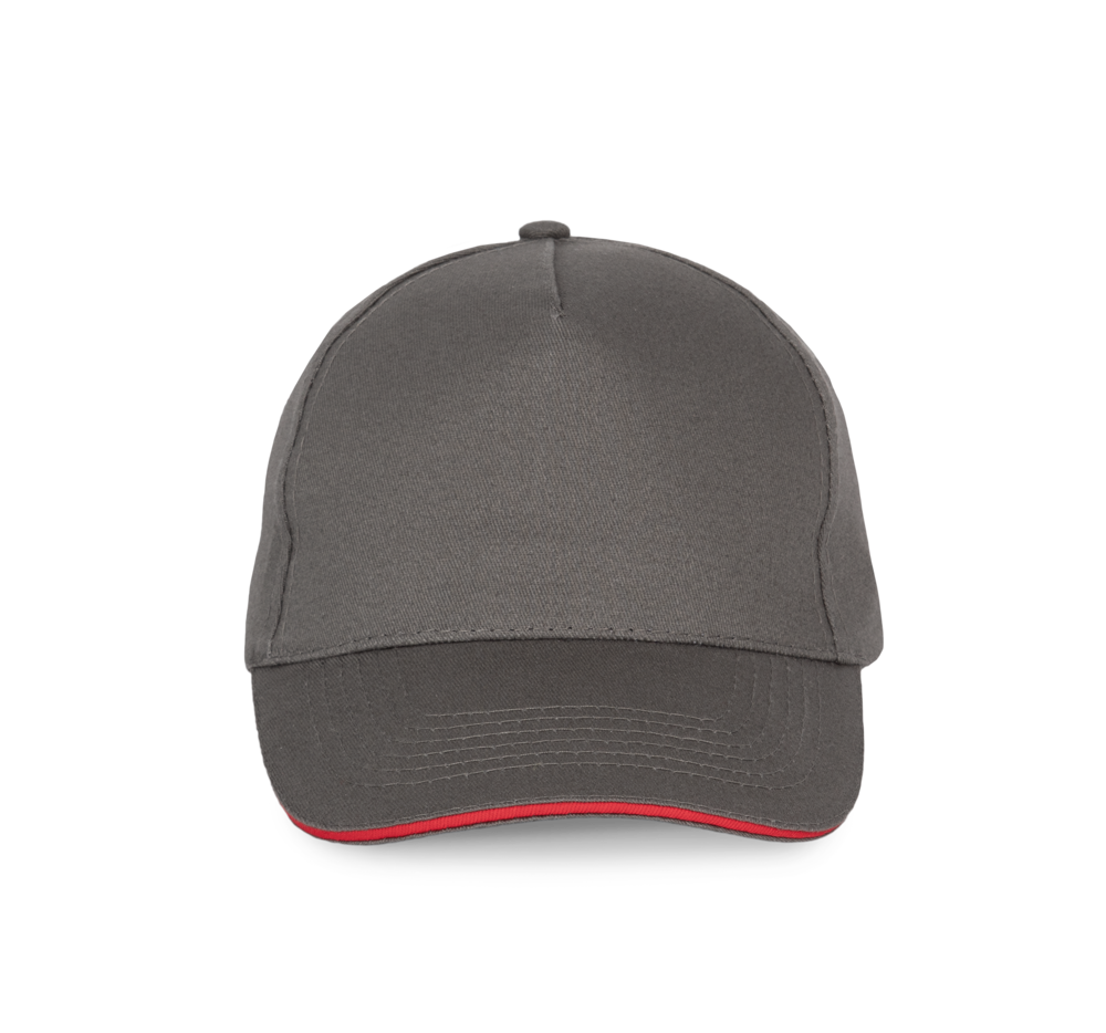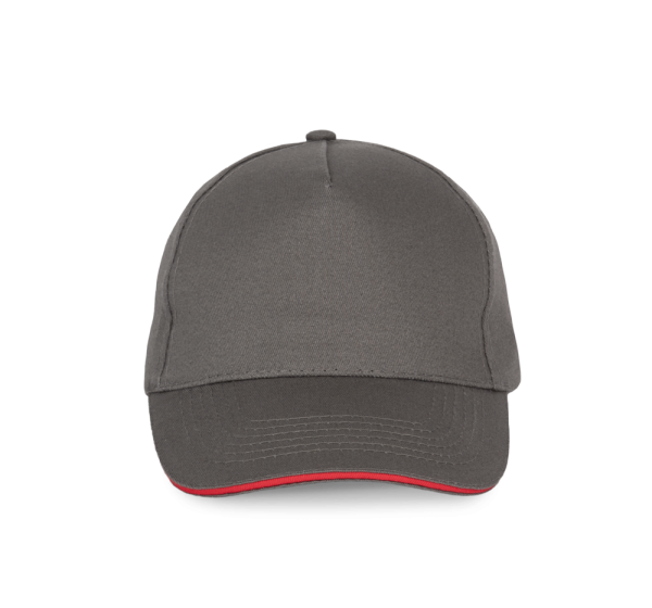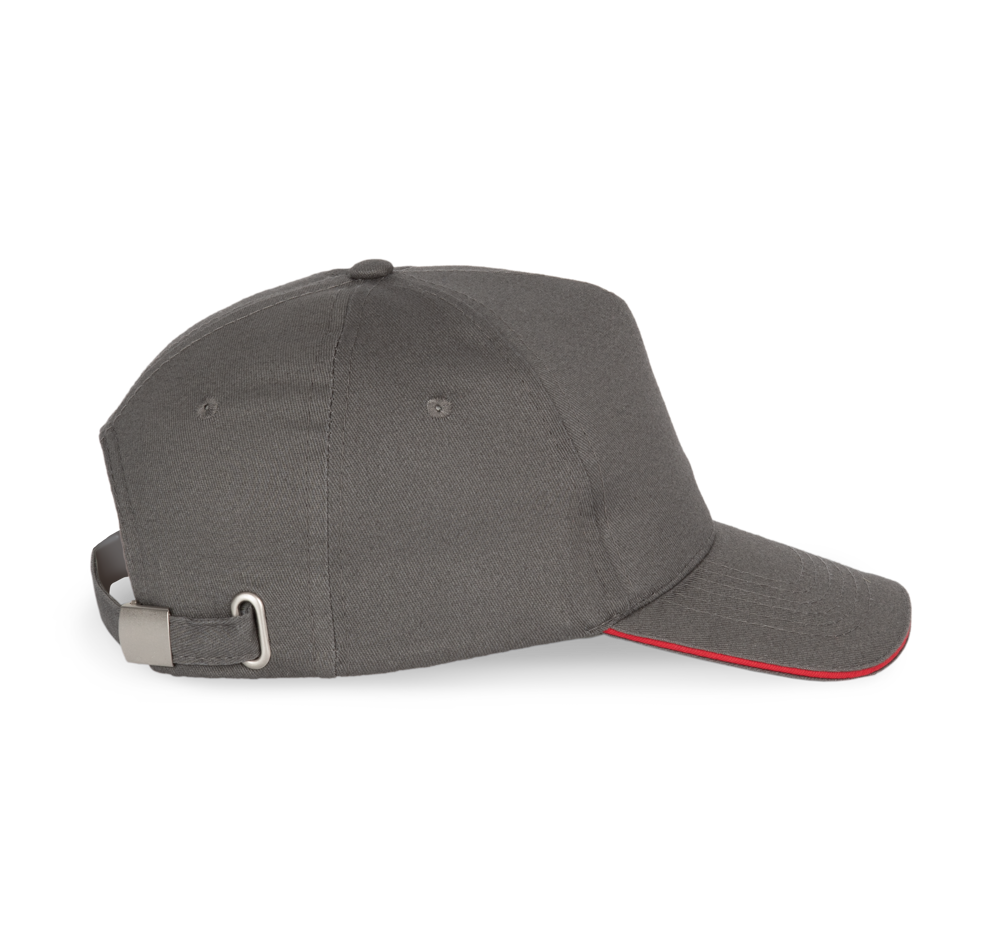 100% zwaar geborsteld sergé katoen. 5 panelen. Klep met contstrasterende bies. Katoenen zweetband. Verstelbare gesp-sluiting.
