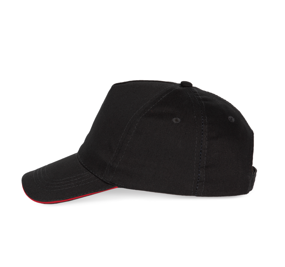 100% sergé katoen. Pet met 5 panels en gecontrasteerde bies. Katoenen zweetbandje. Klittenbandsluiting.