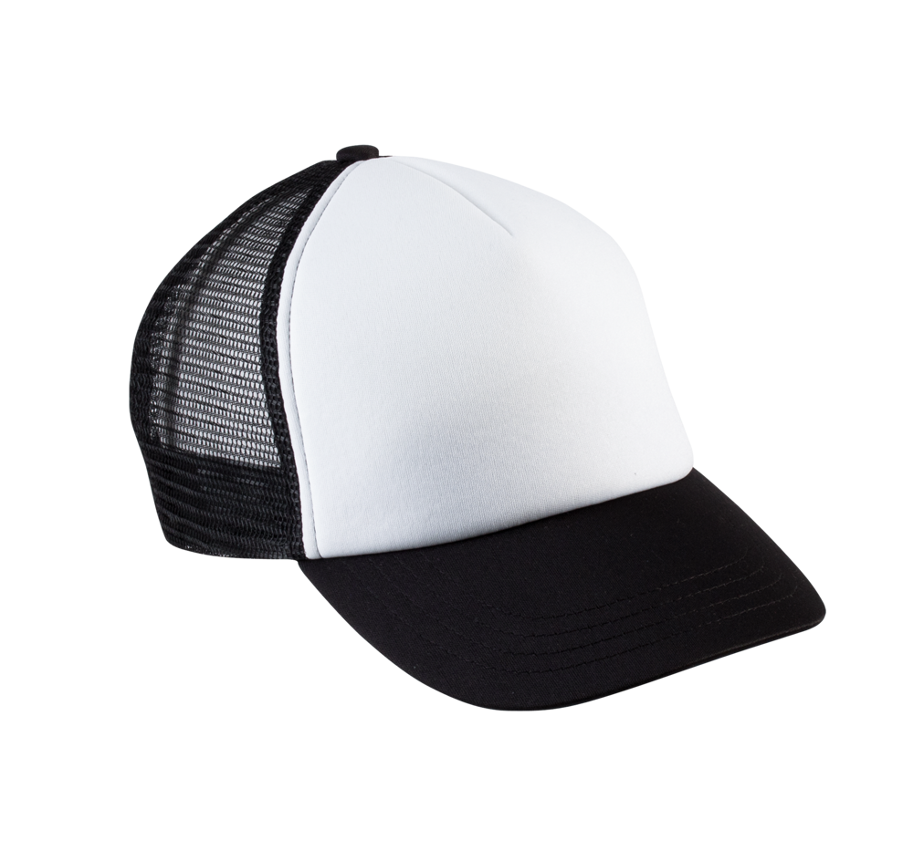100% polyester met mesh van polyester aan de achterkant. 5 panelen. Eenvoudige aanpassing van het frontpaneel. Verstelbare druksluiting van plastic. Hoofdomvang: 53 cm.