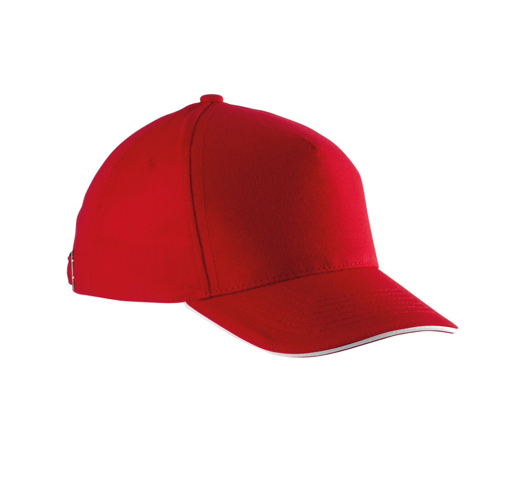 100% geborsteld twillkatoen. 5 panelen. Contrasterende bies. Verstelbare sluiting aan de achterkant met metalen gesp. Hoofdomvang: 53 cm.