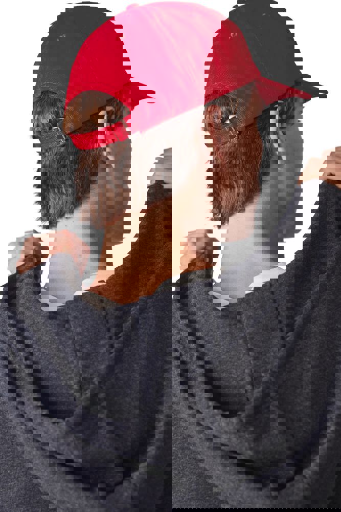 100% geborsteld zwaar katoen. 6 panelen. Laag profiel zonneklep. Sluiting aan de achterkant met metalen gesp.