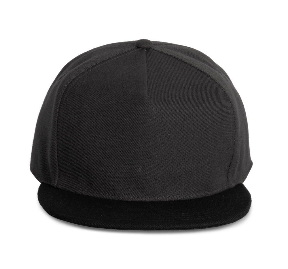 100% polyester. Pet Snapback met 5 panelen. Rechte zonneklep en hoog profiel. Met een verstelbare druksluiting van plastic.