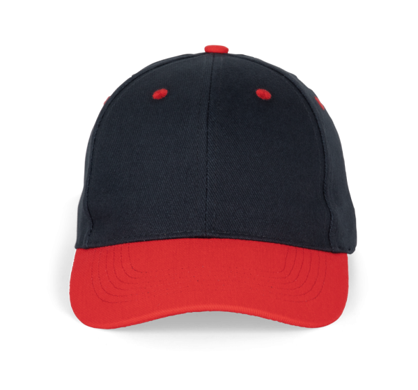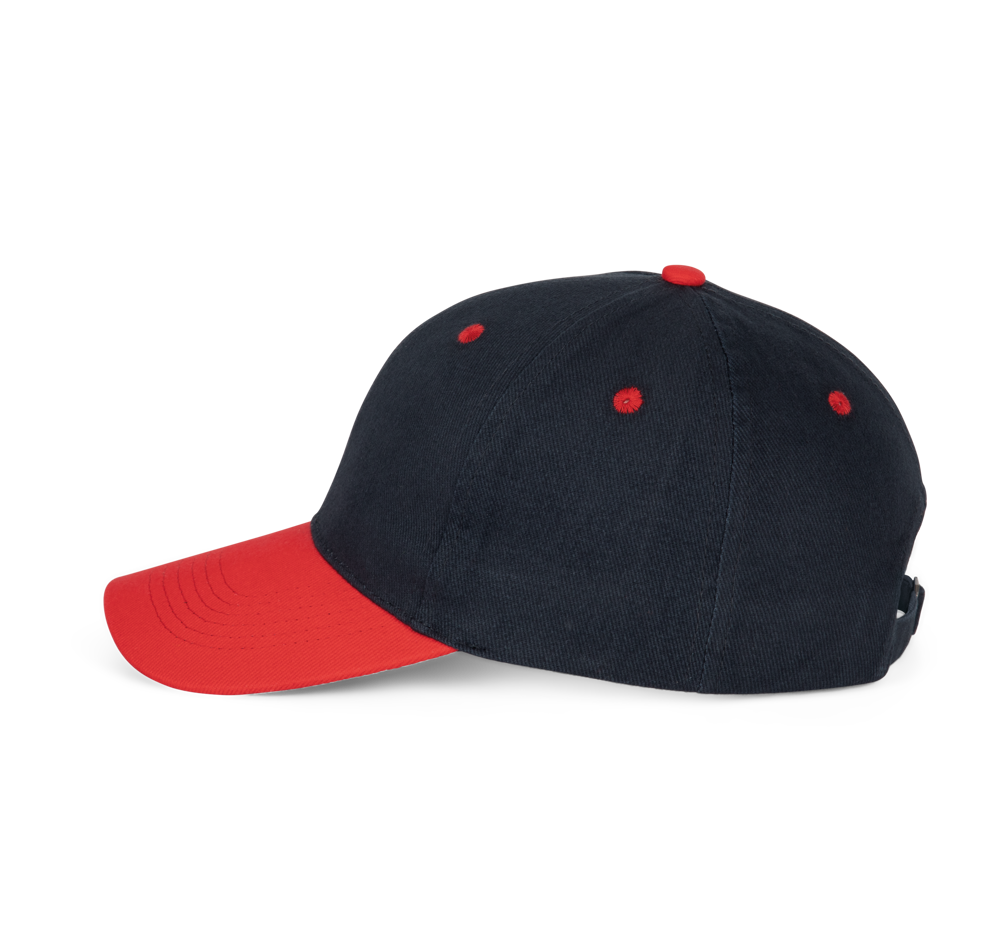 100% katoen. Pet 6 panelen. Verstelbare sluiting met metalen gesp en zelfblokkerende lus.