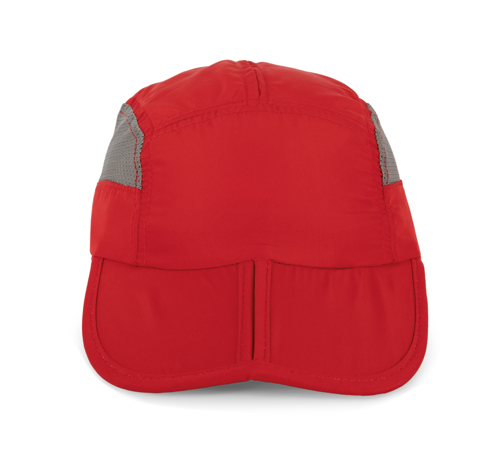 100% polyester microvezel. Voorklep kan gevouwen worden. Afgewerkt met gecontrasteerde netstructuur. Verstelbaar met klittenband.