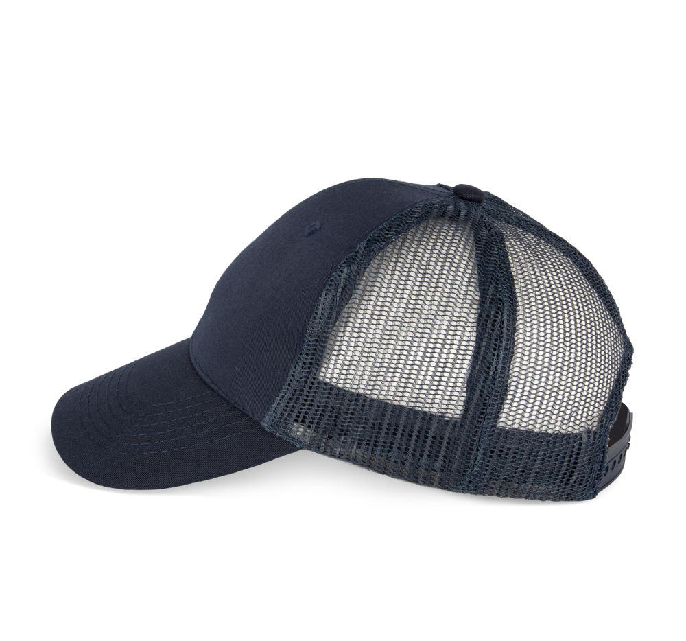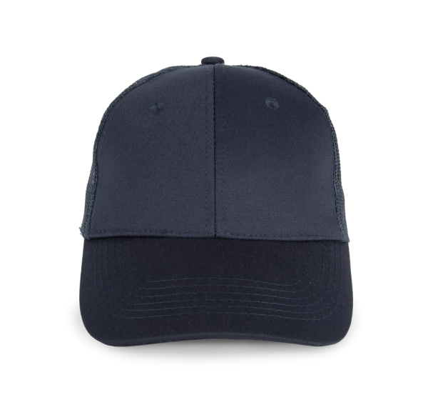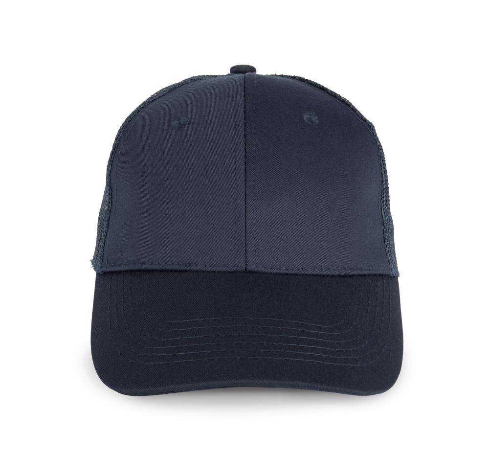 65% katoen / 35% polyester. Truckerpet met 6 panelen en zonneklep met half profiel en verstevigde ton-sur-ton voorpanelen.