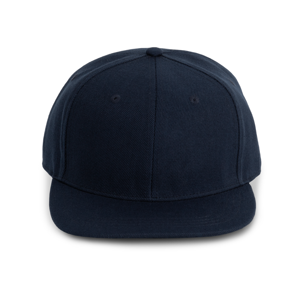100% polyester. Pet Snapback met 6 panelen. Platte zonneklep en hoog profiel. Verstelbare druksluiting van plastic.